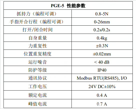 PGE-5 夾爪為工業(yè)薄型平行夾爪,具有精準力控、體積小、多種安裝方式、指尖可定制、抓取掉落反饋、驅(qū)控一體等特點。
