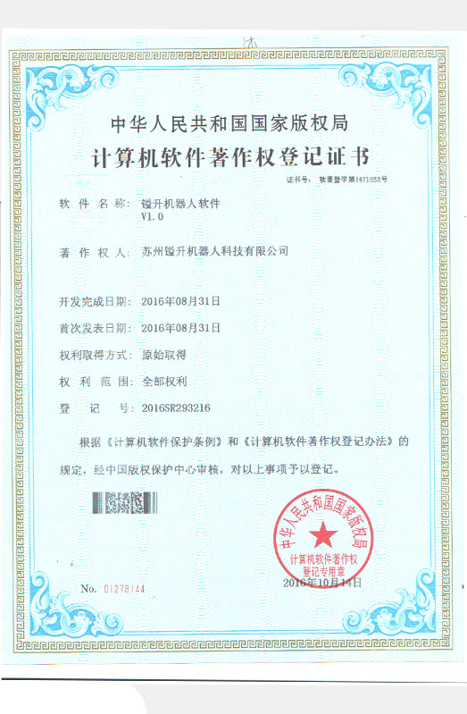 • 軟件著作權(quán)證書