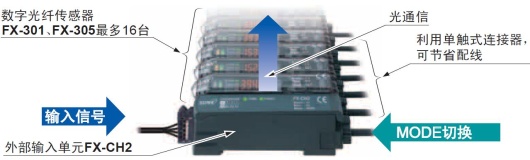 無需對傳感器本體進行操作,利用PLC·可編程智能操作面板和按鈕等外部信號即可一次性地對最多16臺數(shù)字光纖傳感器進行各種設(shè)定/切換。